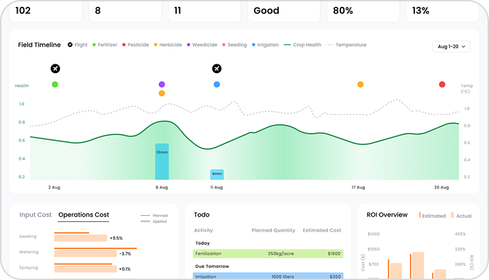 Enable timely decisions with accurate, field-level insights to optimize seeding, irrigation, chemical application, and harvest timing.