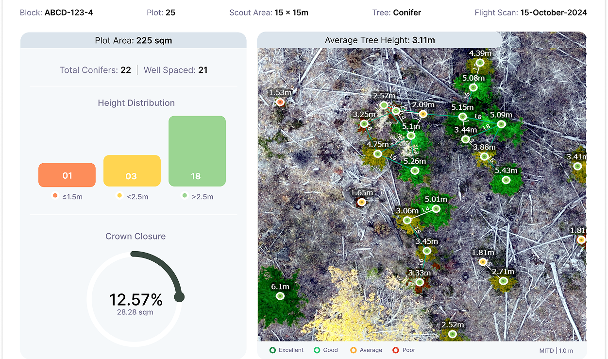 Monitor & detect tree species, terrain and well spaced distribution to support healthier forests.